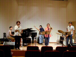 愛媛県下の10組のバンドが出演して、お互いが聴きあいました。各20分の演奏時間、全部で4時間の長時間のコンサートでしたが、演るほうも聴くほうも緊張感があるせいか、長くは感じませんでした。 |